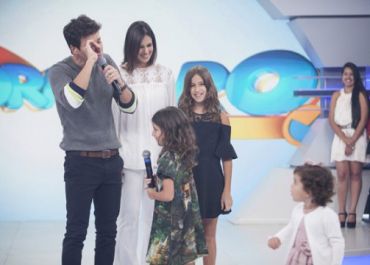 Rodrigo Faro ganha uma homenagem de sua esposa, Vera Viel, e das meninas Clara, Maria e Helena, que invadem o palco e levam o pai às lágrimas.