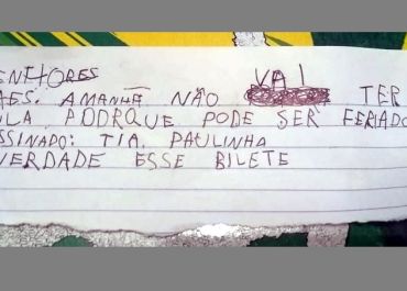 Menino de 5 anos manda bilhete em nome da professora para não ir à escola: 'Pode ser feriado'