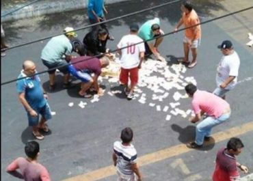 Populares ajudaram a juntar todo o dinheiro que ficou espalhado pela rua e devolveram ao dono do estabelecimento assaltado