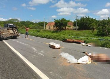 Motorista perdeu o controle após passar em um buraco, no Sertão. Pista ficou parcialmente interditada por cerca de uma hora e meia.