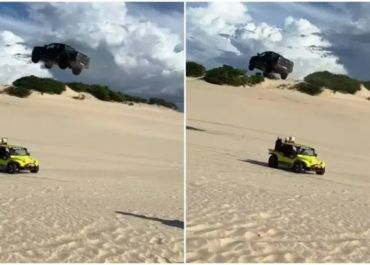 VÍDEO: Motorista de picape que 'voou' em duna no CE ficou desmaiado após impacto da aterrissagem