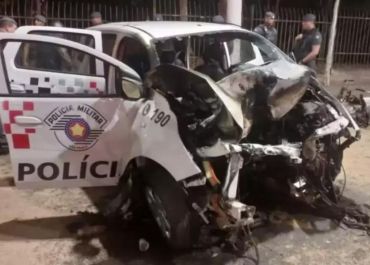 Viatura da PM bate em árvore e explode durante perseguição policial