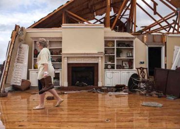 Fotos mostraram edifícios desmoronados, tetos destruídos, árvores derrubadas e campos cobertos de destroços