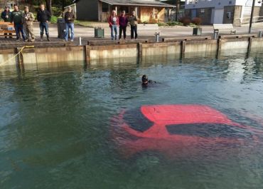 Segundo a polícia, estava chovendo e escuro no momento do acidente. A motorista de 23 anos conseguiu sair do carro e precisou nadar 30 metros.