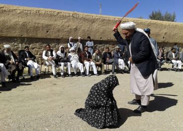 Mulher foi obrigada a se ajoelhar na frente de dezenas de homens. Homem acusado de ser o amante recebeu a mesma punição.