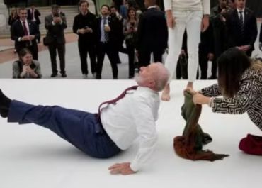 Lula tenta imitar movimento de acrobata durante viagem em Paris