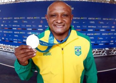 Companheiros de revezamento participam da premiação organizada pelo COB e pela CBAT, em São Paulo, e simulam 4x100m na pista