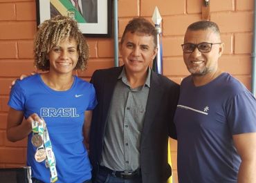 Atleta e seu treinador foram pessoalmente agradecer ao Presidente Paulo Martins pelo apoio concedido
