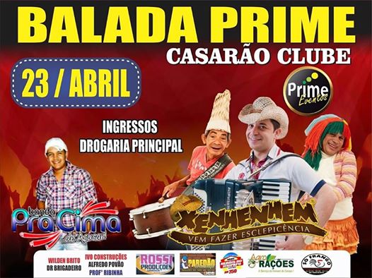 April 23, Saturday, Prime has a Ballad in Big House Club in High-PI field. The achievement is the Prime events and the evening will be the attractions Forro Pra Cima and Xenhenhem.