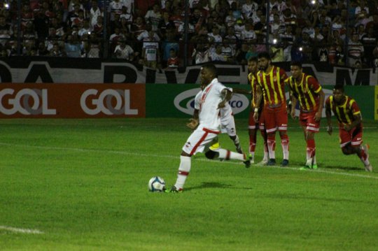 Minutos depois o árbitro viu toque de mão dentro da área do Juazeirense. Novo pênalti. Dessa vez Viola cobrou e colocou na rede. River 1 a 0. O time visitante tentou reagir, mas errava na troca de passes no campo de ataque.