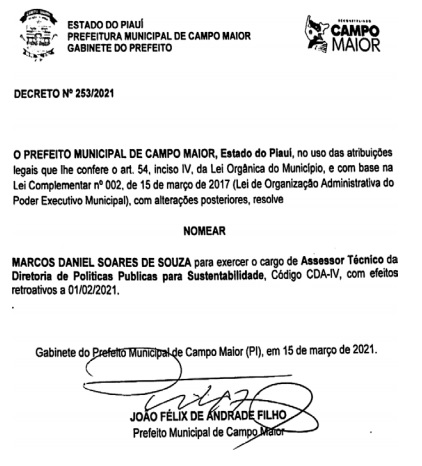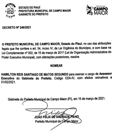 Quem também já “retornou pra casa” foram os ex-vereadores Hamilton Segundo e Daniel Soares. Estes se candidataram na chapa encabeçada pelo ex-candidato a Prefeito, Fernando Miranda pelo PSL, mas não pediam votos para o candidato do partido. Nos bastidores, mesmo durante a campanha, há quem diga que eles já pediam votos para João Félix. Hoje, ambos estão nomeados na Prefeitura desde o primeiro dia de mandato, mas ainda não foram visto dando expediente. O certo é que a recompensa veio e você pode ver nas portarias abaixo.