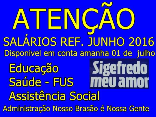Nesta quinta-feira, a prefeitura divulgou na sua página na rede social facebook que os salários referente ao mês de junho já foram creditados nas contas dos servidores.
