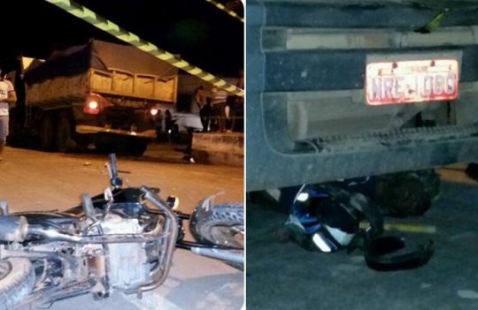Ao bater na placa, a vítima perdeu o controle da moto e foi parar debaixo de um caminhão modelo caçamba, sendo esmagado pelo mesmo, que seguia em sentido contrário. O homem morreu na hora.