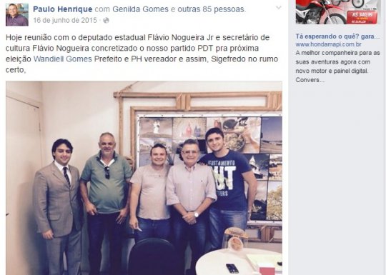 Há pouco tempo, Paulo Henrique apareceu como pré-candidato a prefeito pelo PTB, contra o PDT de Gomes, motivo pelo qual estaria sofrendo, segundo ele, calúnia e difamação do grupo do PDT.