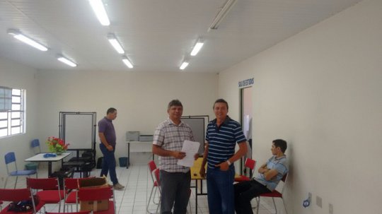 Prefeito Zé Henrique junto com o Vereador Fernando "Gato de Botas" fazendo o pedido.