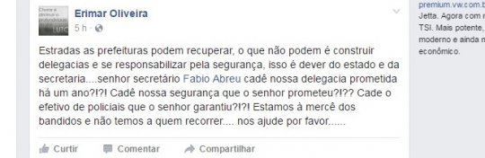 A prefeitura esclareceu ainda que o município cumpre a parceria estado-município e cedeu um imóvel alugado para o funcionamento do GPM e ainda um funcinário administrativo e zeladora, e custeava a logística dos policiais como almoço e janta. Esclareeu aidna que o secretário Fábio Abreu reivindicou que o município cedesse um terreno para a construção de uma delegacia. O terreno foi cedido ainda no ano passado, mas o município não recebeu mais resposta a respeito da obra.