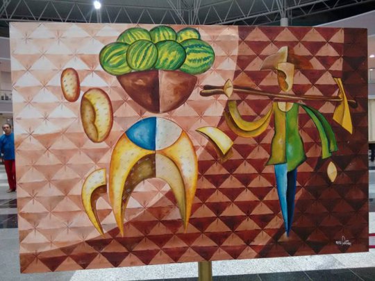 Paisagens coloridas que parecem montadas com retalhos de tecido, figuras humanas estilizadas que lembram a vestimenta exótica do vaqueiro nordestino, os quadros pintados pelo professor Neto Saraiva são tudo isso e um pouco mais, o artista mostra uma brincadeira visual que atrai até ao observador menos atento.