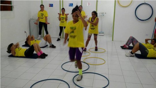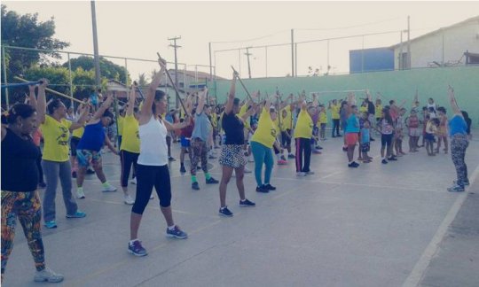 No espaço são realizadas atividades físicas de aeróbica e alongamento ofertadas pelo programa, incentivando as pessoas sair do sedentarismo e ter qualidade de vida.