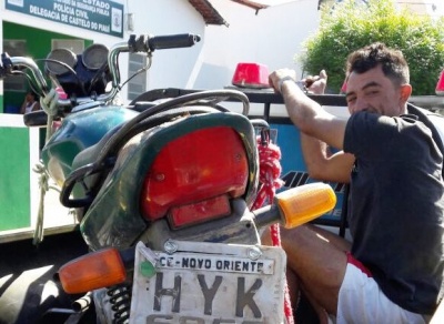 Um homem identificado por Francisco Robério, natural da cidade de Novo Oriente - CE, foi preso na manhã desta quarta-feira (12) por volta das 08h00min na cidade de Juazeiro do Piauí de posse de uma moto roubada (modelo Titan Ks 125 de cor verde e placa HYK – 6855 de Novo Oriente).