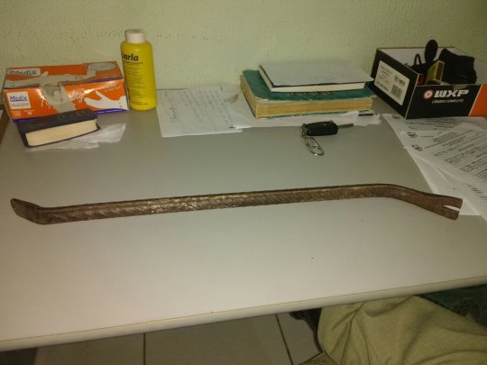 A polícia realizou campanha para prender o acusado. “Ele ameaçou o pai dela de morte. Ele disse se alguém descobrisse mataria o pai dela. Nós adentramos na residência dele e encontramos um instrumento (Pé de Cabra) usado em arrombamento e uma moto suspeita”, afirma o Cabo.