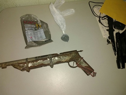 A polícia realizou diligência na casa do suspeito e encontrou uma arma artesanal (garruncha)