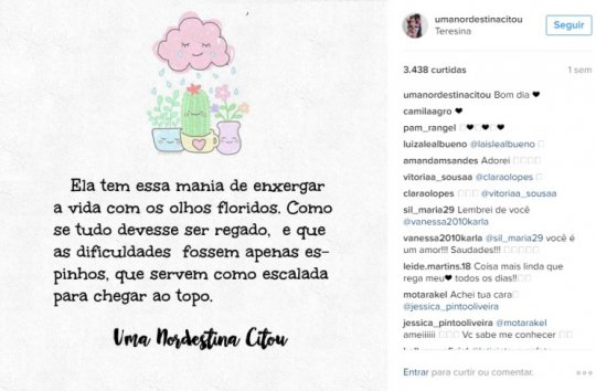 Com milhares de seguidores do Instagram: @umanordestinacitou e Facebook: facebook.com/umanordestinacitou, Laís Rosa faz posts sobre os mais diferentes temas, mas o assunto principal é o amor. Ela tem perfil pessoal, mas mantém contas profissionais intituladas "Uma nordestina citou".
