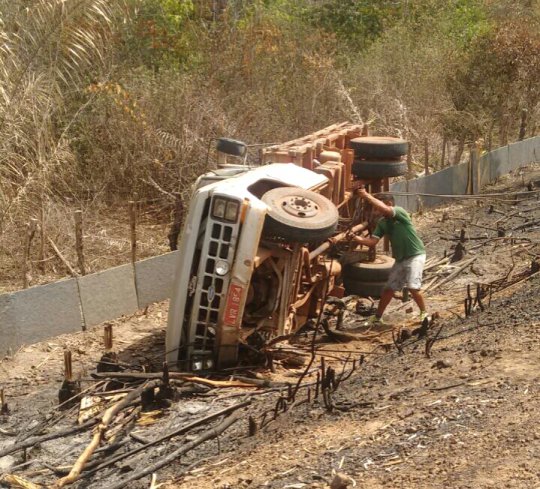 Uma caminhonte modelo Ford F-400 ano 88, cor prata, de placa LVR-1894 da cidade de Batalha-PI, norte do estado, tombou as margens da PI-113, na altura da cidade Cabeceiras do Piauí.