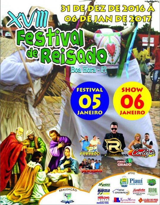 No dia 05 de janeiro acontece a abertura oficial na Arena do Boi. No dia 06 terá a apuração do festival, às 15h ocorre a morte dos bois na casa de cada pagador de promessa e às 21h serão os shows na Praça com Romim Mata, Forró Contágio, Banda Pressão, Parceiros do Forró e Forró Criado.