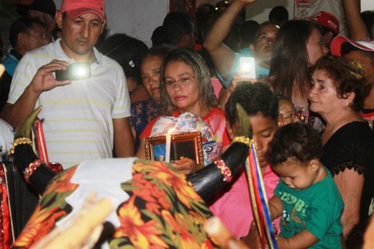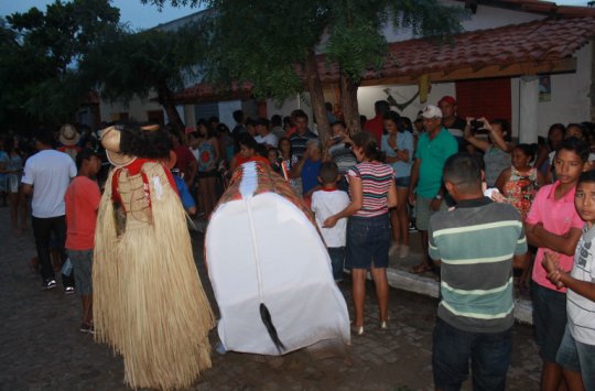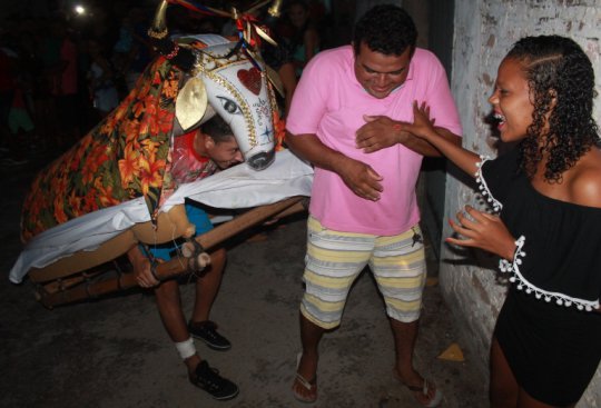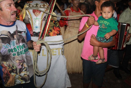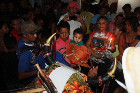 Cristiano Felipe, de 8 meses, neto de Teresina foi quem laçou o boi. Ele é filho de Léo Fernandes, um dos três caretas da dança. Depois de morto, o boi é desmontado ali mesmo, na frente do público. Mulheres rezam o terço e finalizam a parte religiosa.
