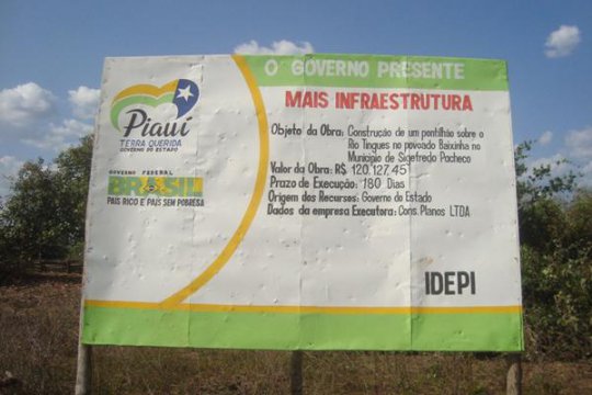 O período eleitoral passou, os candidatos se elegeram e a ponte foi esquecida. A obra deveria ter sido executada pelo então governo de Wellington Dias, através do IDEPI. Iniciou, mas parou e até os trabalhadores, contratados na região, tiveram dificuldades em receber os dias trabalhados. Já no governo de Wilson Martins alguém ainda apareceu no local e trocou da placa da obra, substituindo a logomarca de Wellington pela do atual governo, mas ficou nisso.