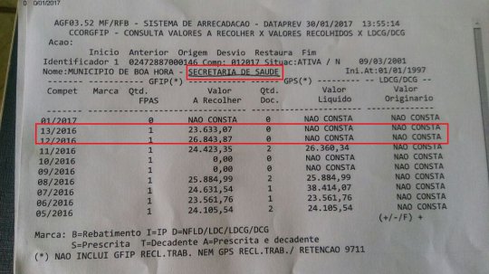 A secretária de finanças de Boa Hora, Gefesony Prudêncio, explica que a retenção dos valores ocorre devido a falta de repasse no mês de dezembro e do 13º salário. “O ex-prefeito pagou a folha de dezembro e o 13º, mas recolheu e não efetuou o repasse para a previdência. Neste mês, o descontou foi feito automaticamente”, diz Gefesony.