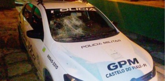 Dede que reside na Localidade Resfriado, município de Castelo, estava visivelmente embriagado e após ter se envolvido em uma confusão durante uma festa, foi até o GPM da Polícia Militar e quebrou o vidro frontal da viatura utilizando de uma pedra e em seguida um cone que estava no local.