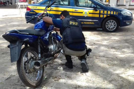 A polícia Rodoviária Federal recuperou uma moto modelo Honda CG 150 TITAN KS - 2004/2004, cor azul, placa DJK-6578, de São Paulo, com registro de roubo. A abordagem foi feita na tarde desta quarta-feira (08/03) pela Polícia Rodoviária Federal no km-202 em Capitão de Campos, a 130 km ao norte de Teresina.