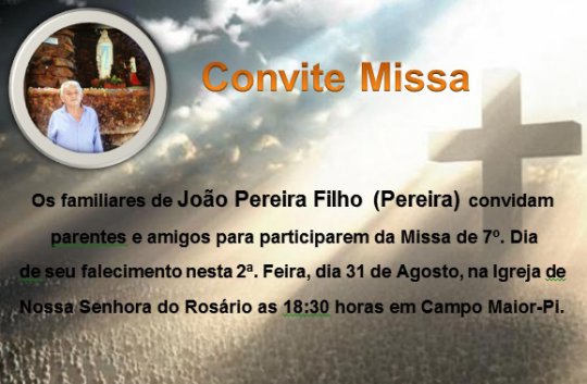 Convite Missa de 7º. Dia de Falecimento de João Pereira Filho