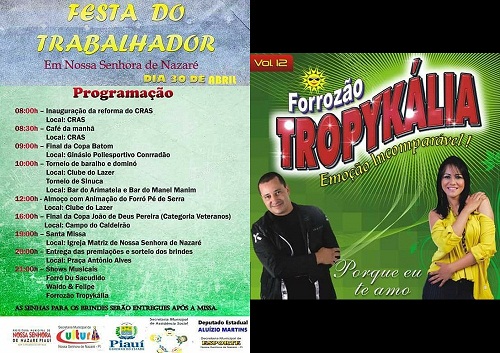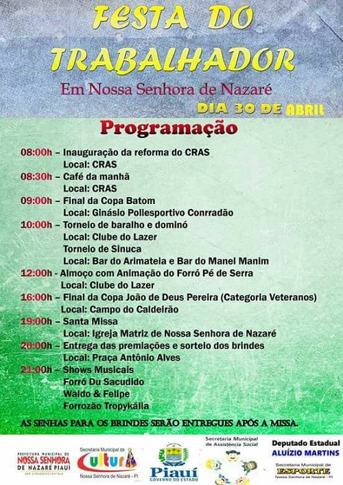 Neste domingo dia 30 de Abril a cidade de Nossa Senhora de Nazaré irá homenagear os trabalhadores e trabalhadoras com uma vasta programação.