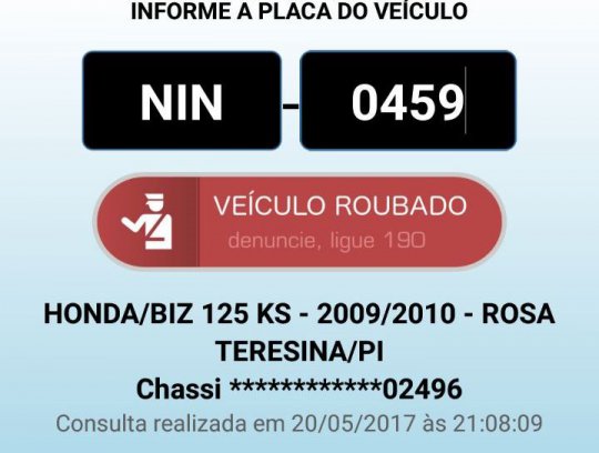 Policias do Grupamento da Polícia Militar (GPM) de Jatobá do Piauí (134 km ao norte de Teresina) detiveram um homem identificado por Francisco Ariel Silva Freire, quando o mesmo abastecia uma moto modelo Honda BIZ, 125, placa NIN-0459, de Teresina. A moto tem registro de roubo. O homem é morador da comunidade Novo Santo Antonio, que já fica no município de Capitão de Campos.