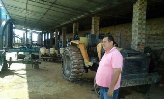 Fausto Gaioso mostra maquinários que comprou para produzir cachaça, mas diz que a fábrica nunca foi inaugurada desde sua contrução em 2010, por falta de mão de obra qualificada e que o empreendimento iria gerar mais de 50 empregos entre formais e informais. "Fico triste quando olho pra esse galpão e não vejo meu sonho se realizando, e para não deixar minha fazenda parada vendo e compro animais" diz.