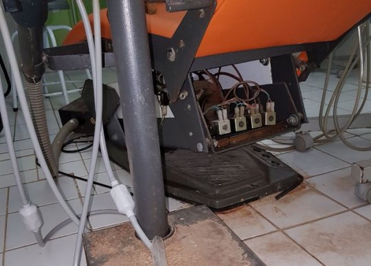 Ao visitar o local, os fiscais também encontraram cadeira odontológica danificada e com fiação elétrica exposta, ferrugem no mobiliário, torneiras inadequadas e infiltrações nas paredes. Após a vistoria, concluiu-se que não há condições mínimas para a prática segura da Odontologia.