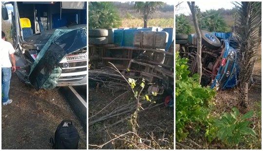 Com a força da colisão, o caminhão desceu o aterro e capotou. A empresa TranSilveira informou que nenhum passageiro sofreu graves ferimentos e que providenciou transporte para quem se dirigia para Campo Maior e Teresina.