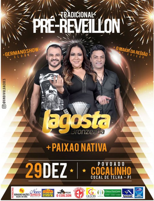 Acontece nesta sexta-feira (29/12) a tradicional e maior festa de Pré-Réveillon da região. No povoado Cocalinho, em Cocal de Telha, Germano Show Clube apresenta Lagosta Bronzeada, paixão nativa e uma grande queima de fogos para se despedir deste ano e dar boas vinda ao ano novo.ÂÂ