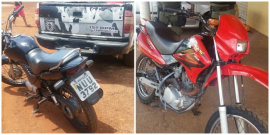 Duas motocicletas com registro de roubo foram recuperadas pela Força Tática do 15º Batalhão da Polícia Militar nessa terça-feira (26/12) na cidade de Nossa Senhora de Nazaré.