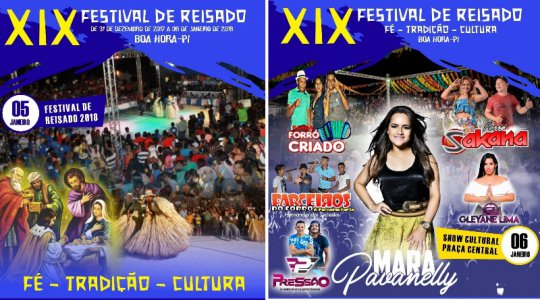 A partir deste domingo, dia 31 de dezembro de 2017, até o dia 06 de janeiro de 2018 a cidade de Boa Hora comemora a maior festa de reisado de onde se tem notícias. São 14 grupos de reisado, mais de 30 mil reais de premiação, arena ampliada e a escolha da garota Reisado 2018.