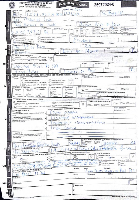Segundo a própria família, fez-se necessária a divulgação no objetivo de frear especulações feitas sobre a morte da vítima. Sendo observadas as declarações contidas em documento oficial sobre a morte do jovem (imagem) conclui-se que as causas da morte da vítima foram: Edema Cerebral, Hemorragia intracraniana, Traumatismo Crânio-encefálico e lesão na coluna.