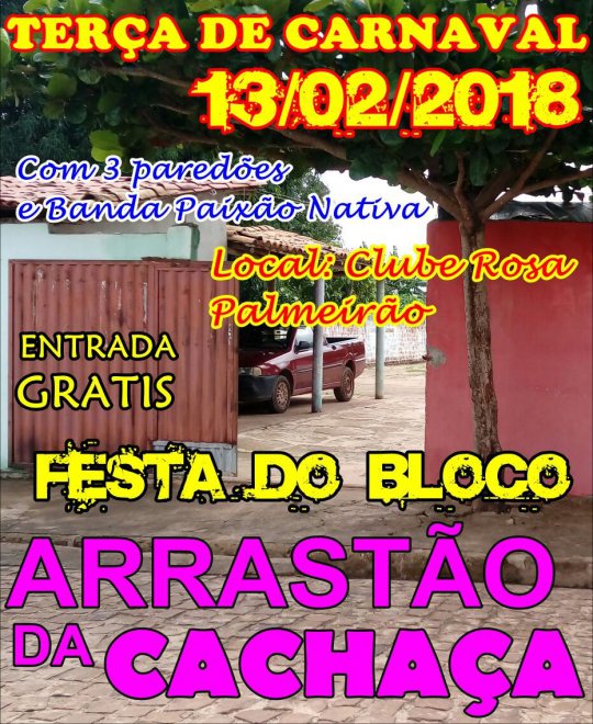 Prometendo ser o maior bloco de Cocal de Telha, o ‘Arrastão da Cachaça’ realiza sua festa na terça-feira de carnaval, dia 13. A concentração será trailer Rosa Palmeirão, a partir das 15hs