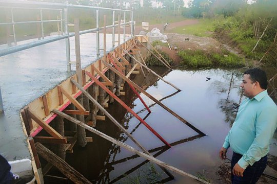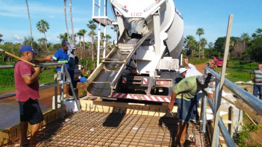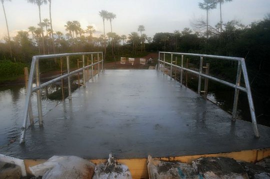 Aplicação do piso de concreto da ponte da comunidade São Pedro foi concluída nesta quinta-feira
