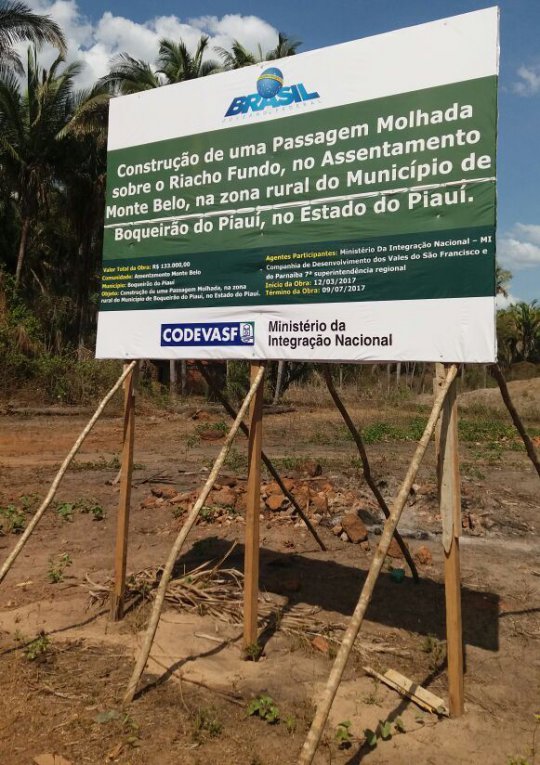 Um morador de Boqueirão do Piauí, Antonio Rufino gravou um vídeo e fez fotos mostrando a obra de uma passagem molhada sobre o Riacho Fundo, que foi levada, em parte pelas águas, dois meses depois de inaugurada. A estrada liga o Assentamento Monte Belo à cidade de Boqueirão do Piauí e a outras Comunidades.