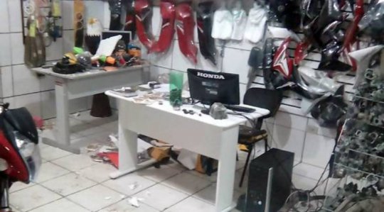 Na loja de peças de motos "Renan Acessórios", elementos quebraram o forro do estabelecimento e adentraram o local, porém não conseguiram levar nada, pois a mãe do proprietário, ao ouvir o cachorro latir, dirigiu-se à loja, que fica no fundo de sua casa, e gritou por socorro, obrigando os elementos abortar a ação.