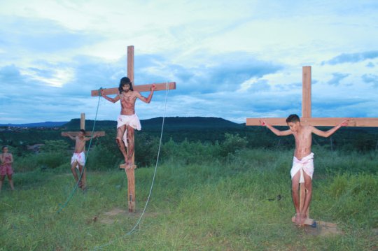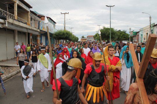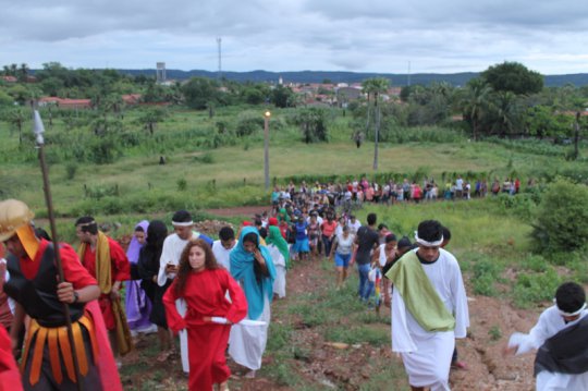 A Celebração da Paixão de Cristo reuniu dezenas de fiéis na tarde de ontem (30/03) na cidade de São Miguel do Tapuio, no Piauí. A Procissão deu início às 16h30min com percurso saindo da Igreja Matriz até a capela de Nossa Senhora do Carmo, no Bairro Canto. A encenação foi realizada por jovens que compõem o grupo EJC (Encontro de Jovens com Cristo) e acompanhada por centenas de fiéis.