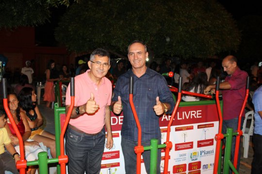 Equipamentos de uma academia ao ar livre também foram entregues pelo prefeito Oscar Bandeira, graças a uma emenda do deputado estadual Aluísio Martins.
