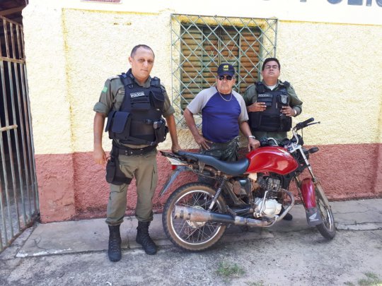 Após denúncias, o veículo, uma motocicleta Honda CG 150 Titan KS na cor vermelha e de placa NIE 8135, foi encontrada em uma residência na localidade do interior do município conhecida por Venancio com um rapaz identificado como Jhon Lenno Ferreira. No momento da busca, o suspeito não se encontrava em sua residência.